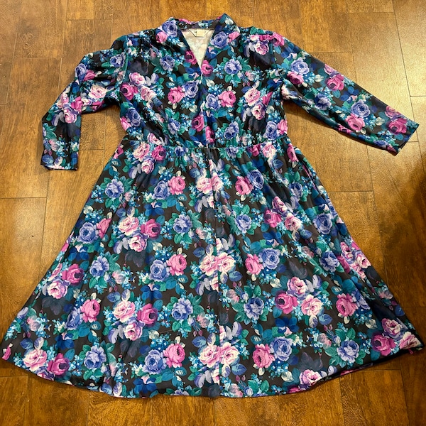 Anthony Richards Womens House Dress Size XL Purple Floral Pattern 3/4