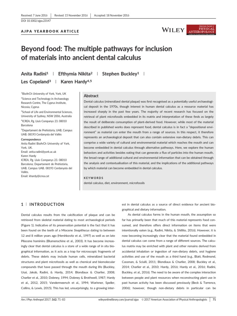 American J Phys Anthropol 2017 Radini Beyond Food The Multiple