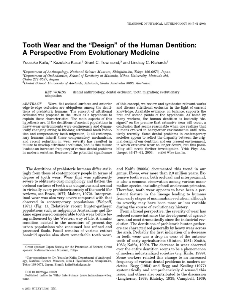 American J Phys Anthropol 2003 Kaifu2003 Tooth wear and the