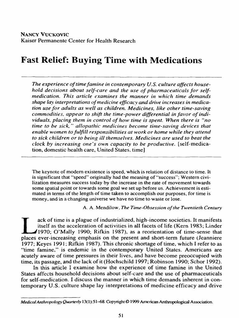 Med Anthropol Q 2008 Vuckovic Fast Relief Buying Time With