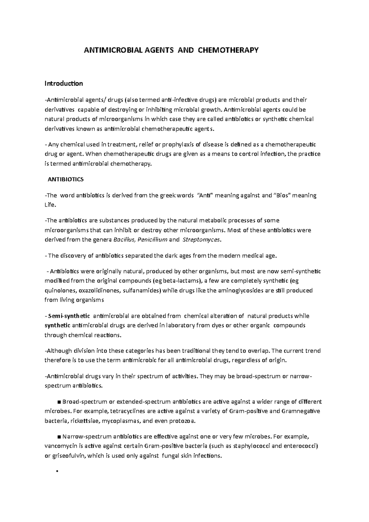Classification_of_antimicrobial_agents Summaries Nursing Docsity
