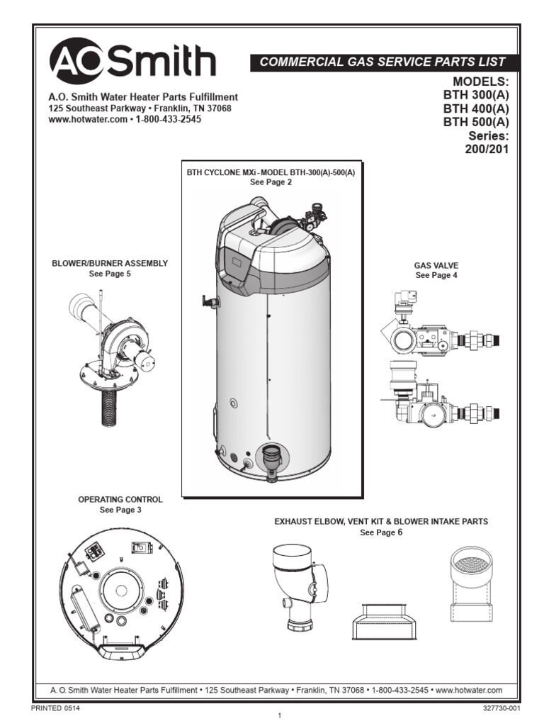 Commercial Gas Service Parts List A.O. Smith Water Heater Parts