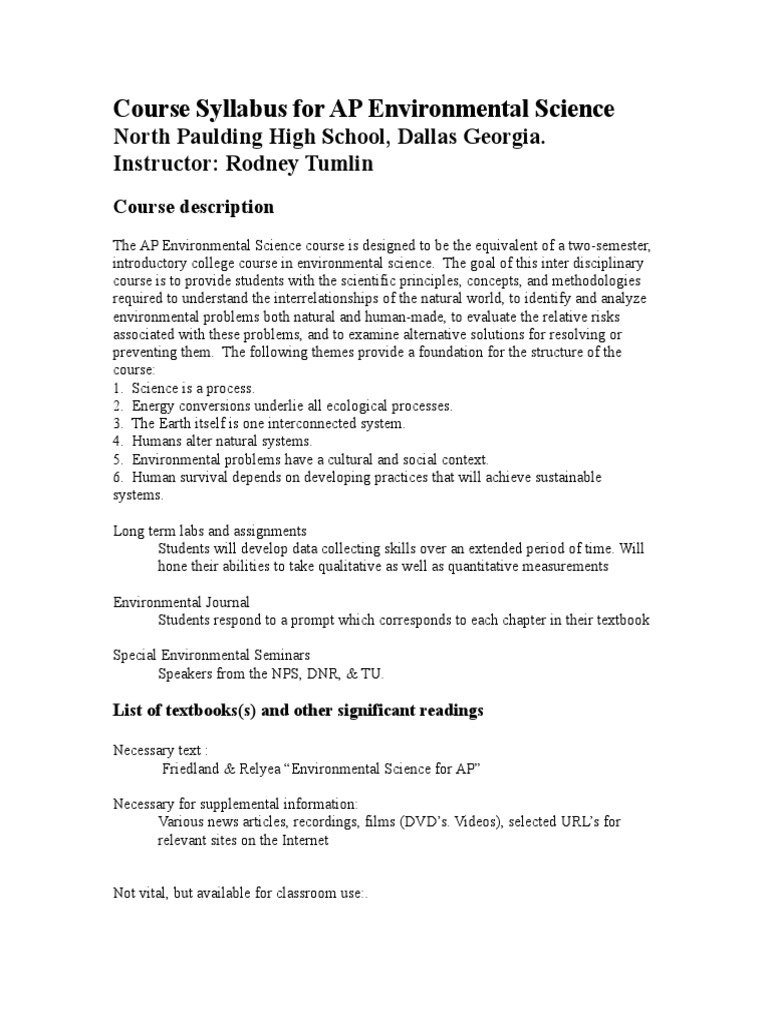 AP Environmental Science Syllabus