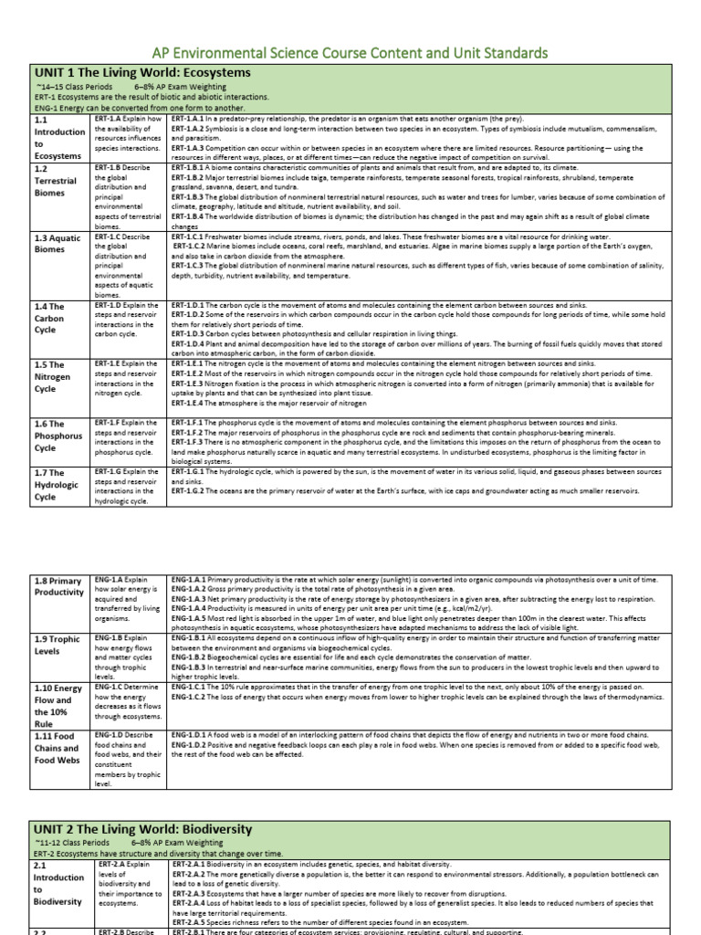 AP Environmental Science Course Content and Unit Standards PDF