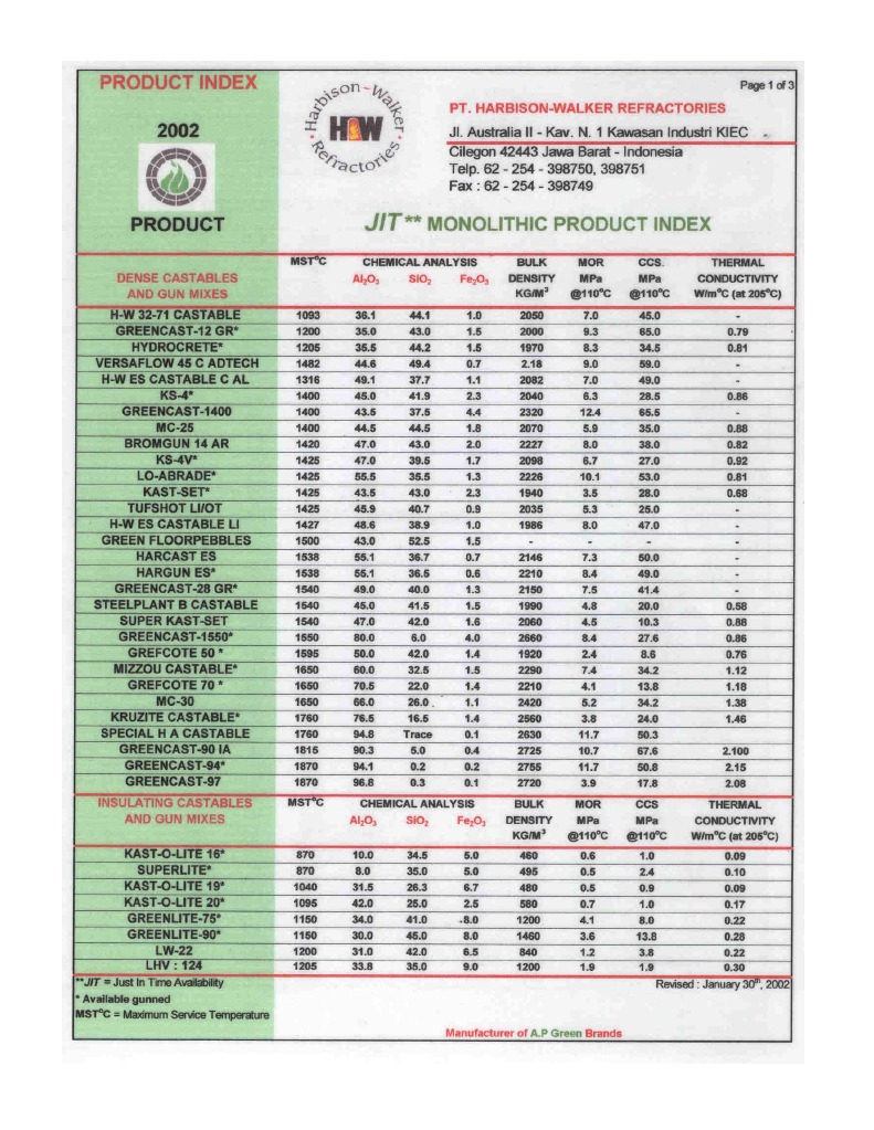 A P GREEN Refractory Catalog Refractories ASBESTOS KastOLite