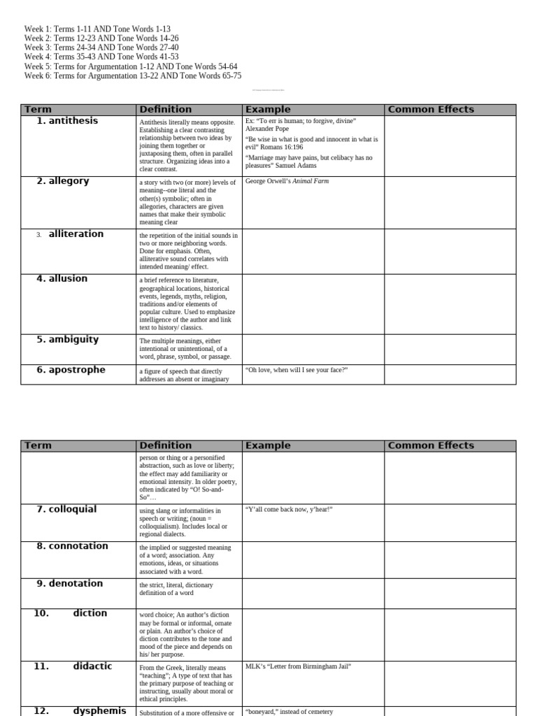 AP Language and Composition Literary and Rhetorical Terms List