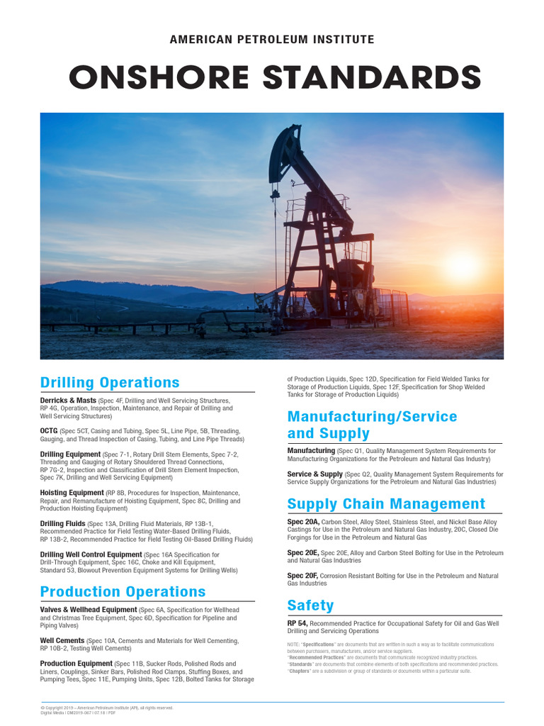 API Standards OnshorePoster PDF Pipe (Fluid Conveyance) Oil Well