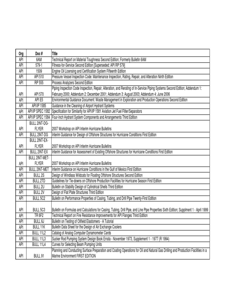 List OF API Standards Commonly Used in Oil & Gas PDF