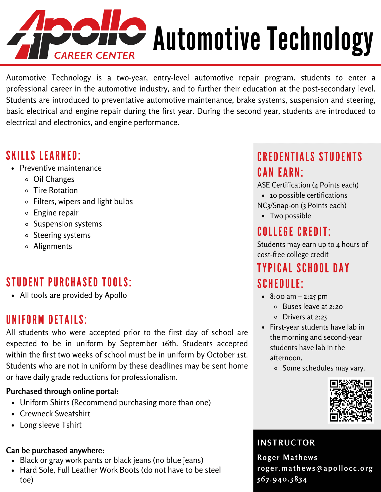 Program Information • Apollo Career Center