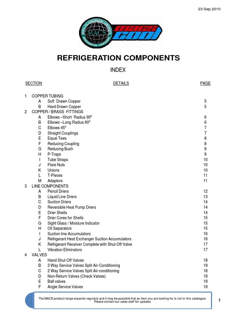Refrigeration Component Spare Parts Catalogue 23092010 PDF Pipe