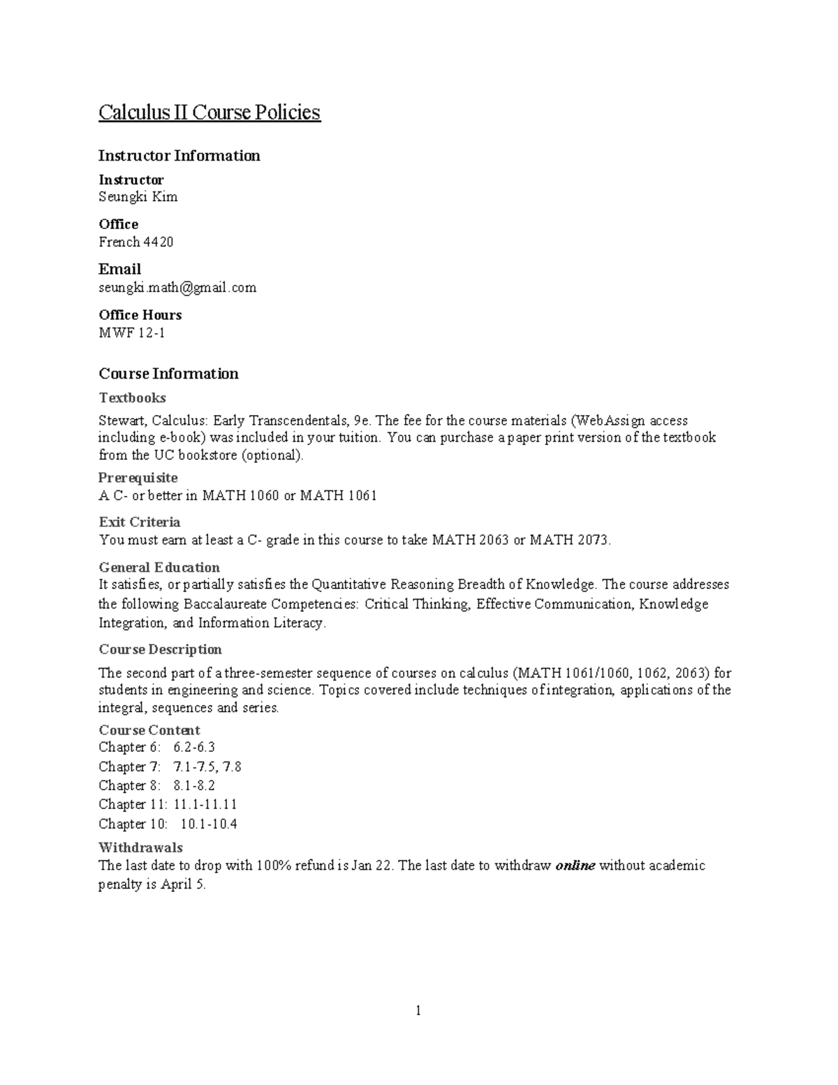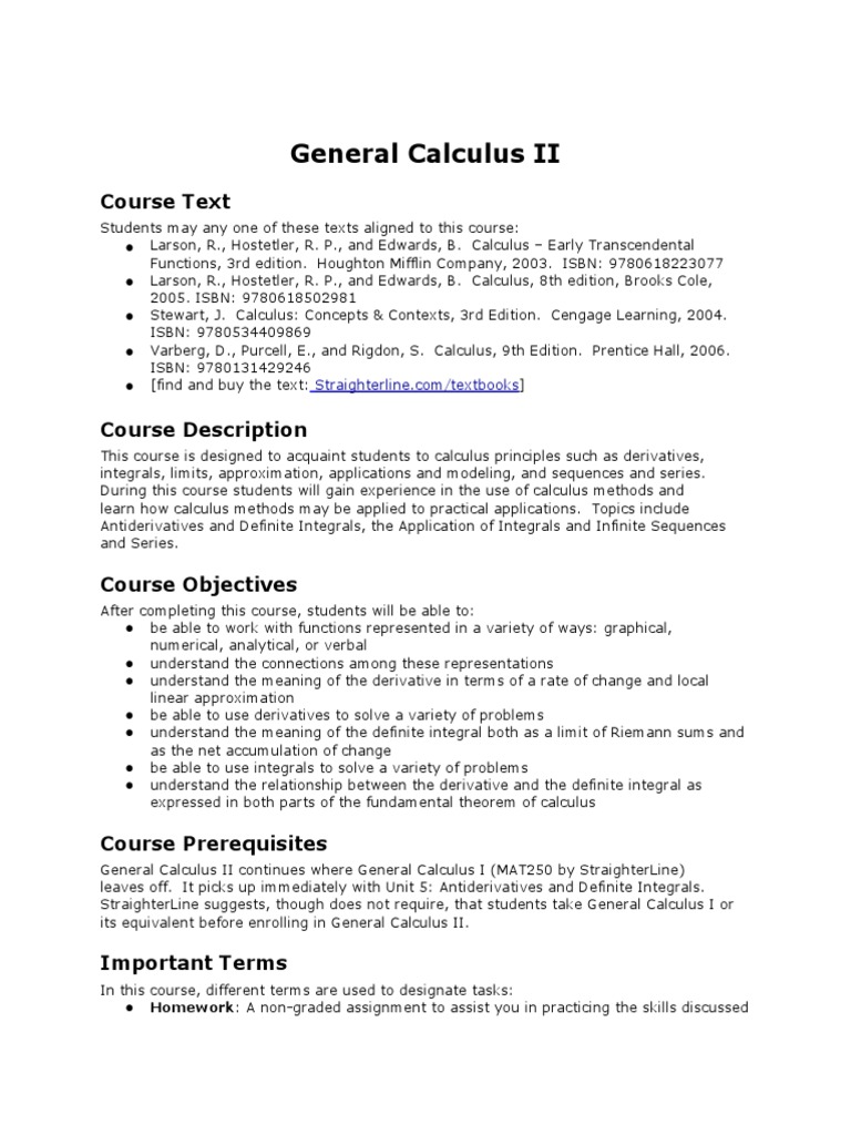 Calculus II Online Course Guidelines 1 Calculus II Online Course