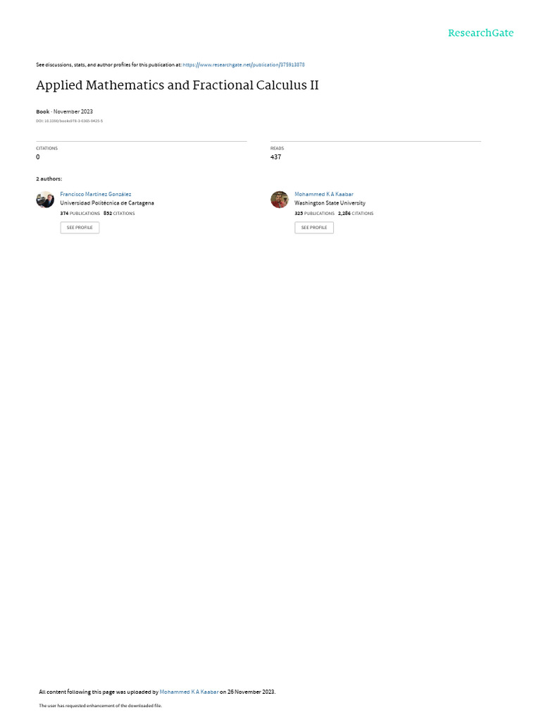 Applied Mathematics and Fractional Calculus II PDF Mathematics