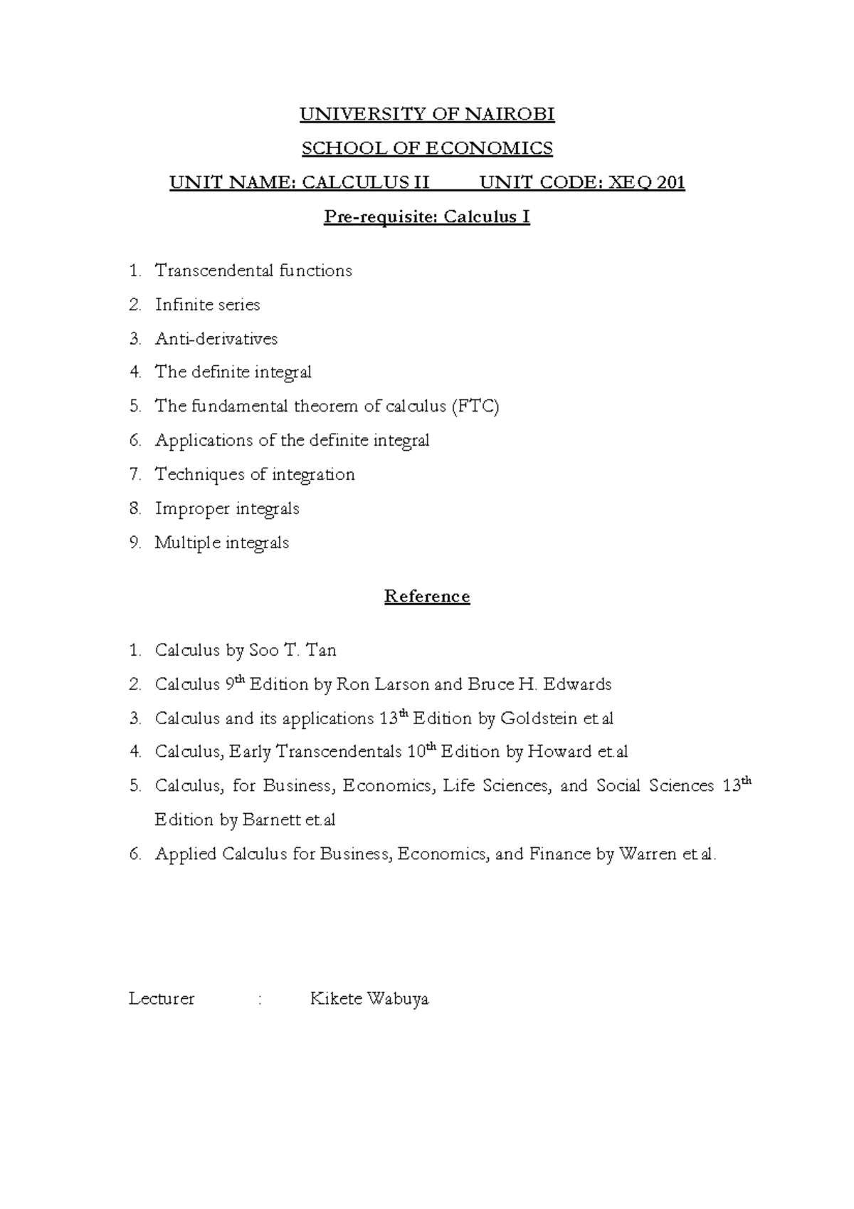 Calculus II Course Outline and Topics XEQ 201 Studocu