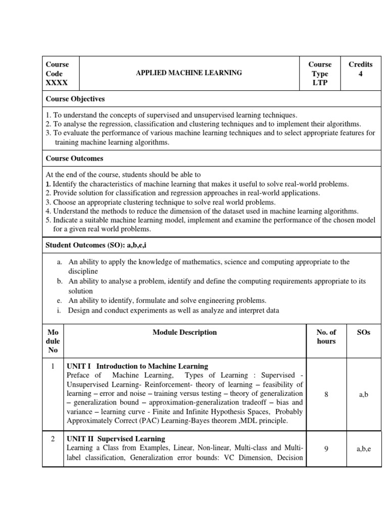 Applied Machine Learning Course Syllabus Objectives, Modules