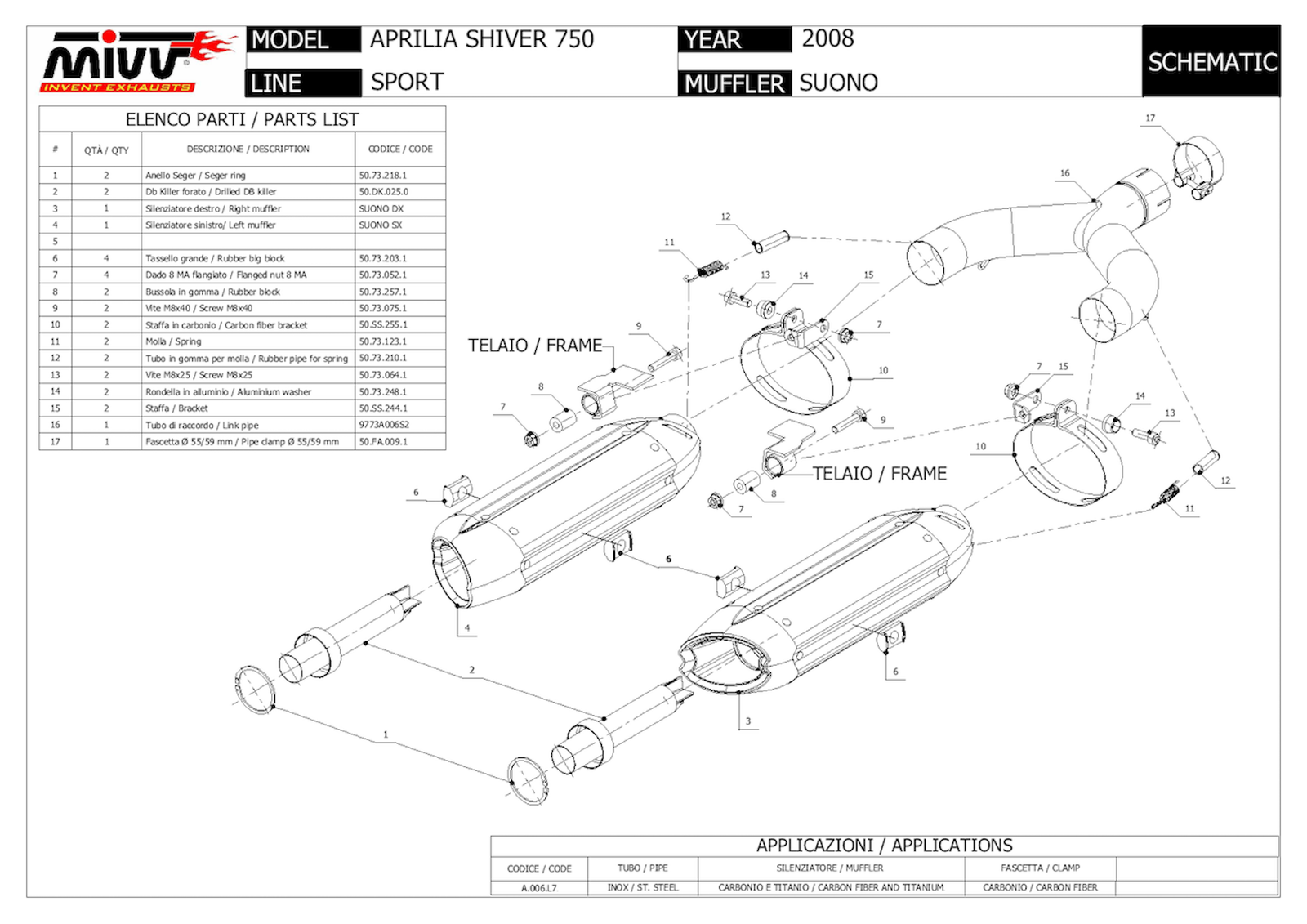 MIVV 2 EXHAUST OEM SUONO BLACK C APRILIA SHIVER 750 2015 15 eBay