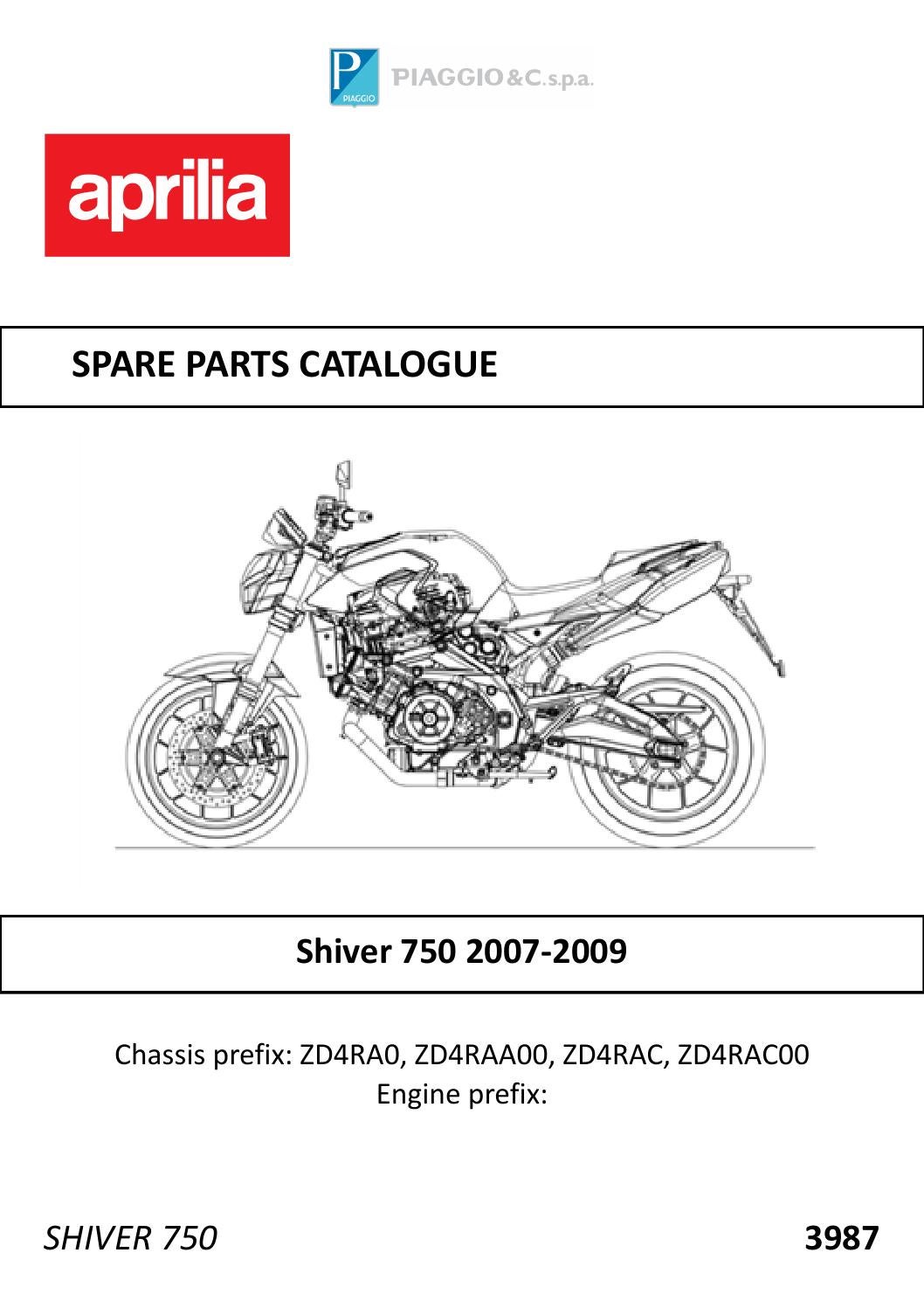 Aprilia Shiver 750 Parts Catalog