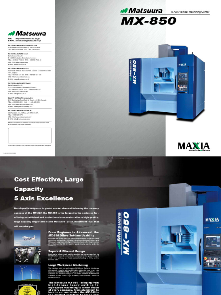 Matsuura MX850 2019 5Osiowe Centra Obróbcze APX Katalog PDF