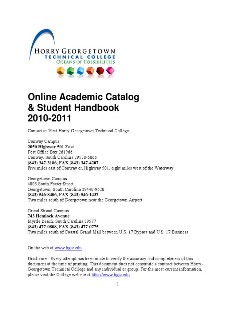 Online Academic Catalog & Student Handbook 20102011 2050 Highway 501