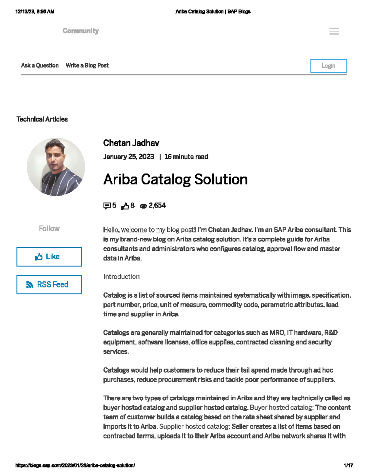 Ariba Catalog Solution an SAP Ariba consultant. This is my blog on