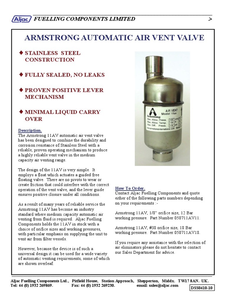 Armstrong Automatic Air Vent Valve PDF Valve Stainless Steel