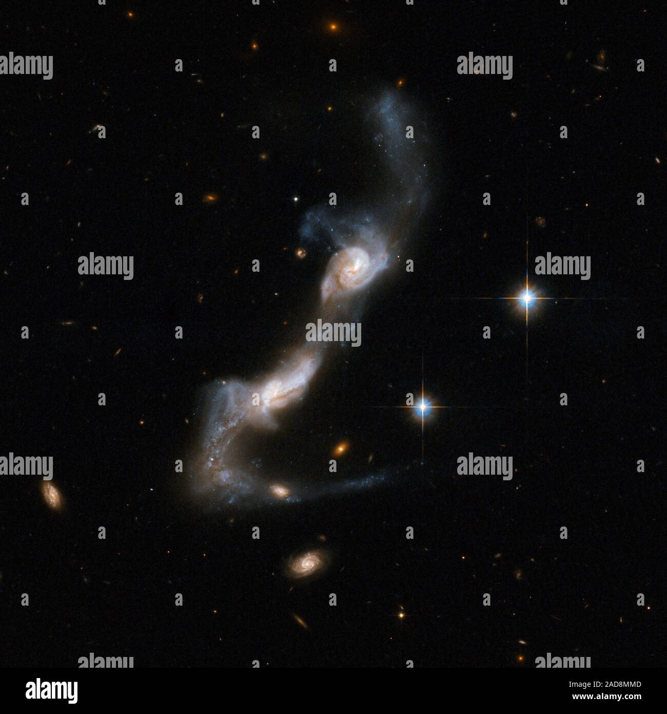 This striking image captures the interacting galaxy pair known as Arp