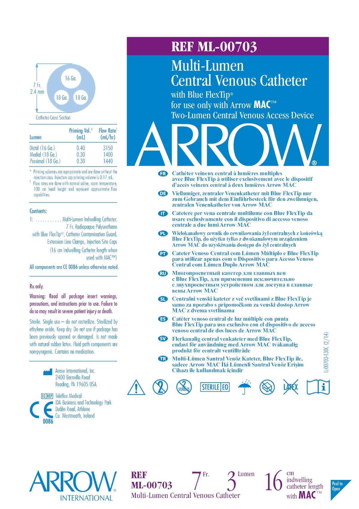 ARROW ML00703 MultiLumen Central Venous Catheter 7F x 16cm(X) GB