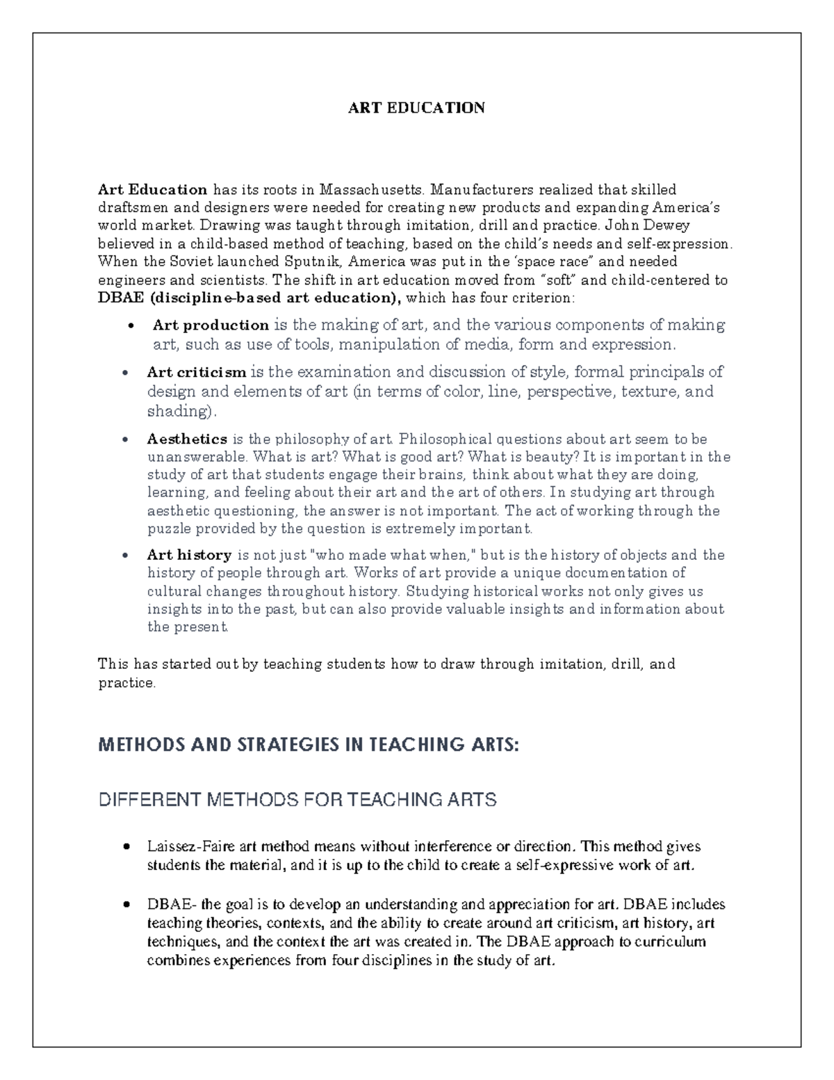 (1) Teaching ARTS Notes in Arts for students TEACHING ARTS Laissez