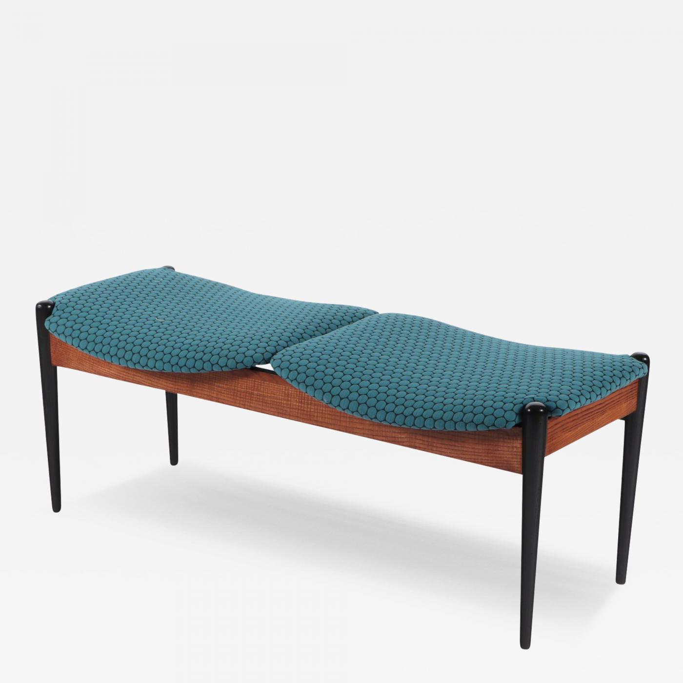 Arthur Umanoff MID CENTURY MODERN THRUSH,WOOD AND BLACK IRON BENCH BY