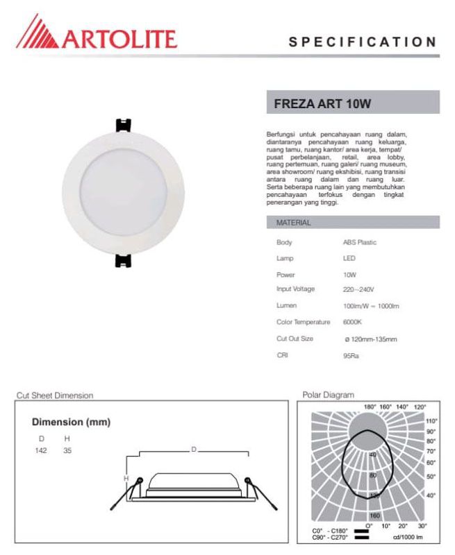 LAMPU DOWNLIGHT ARTOLITE FREZA ART 120 10W 6000K