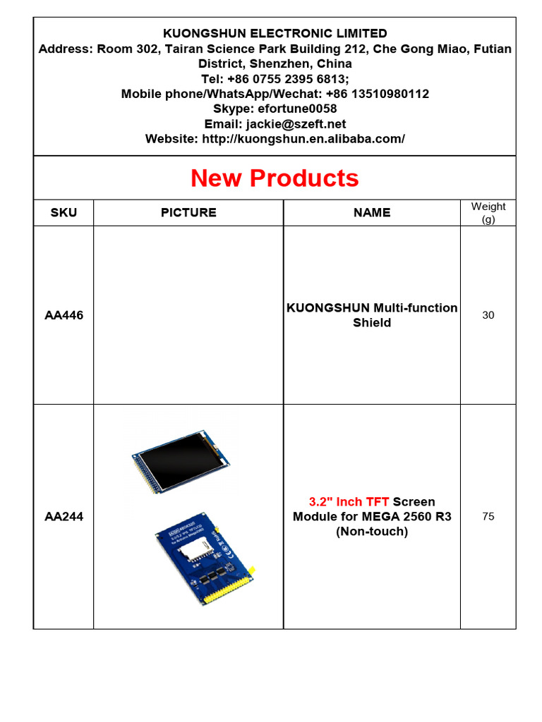 Arduino Catalog (From Yuki of Kuongshun 2021715) PDF Numerical