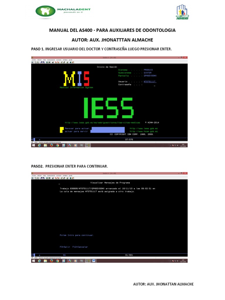 Manual de Llenado Del As400 PDF Odontología Cuidado de la salud