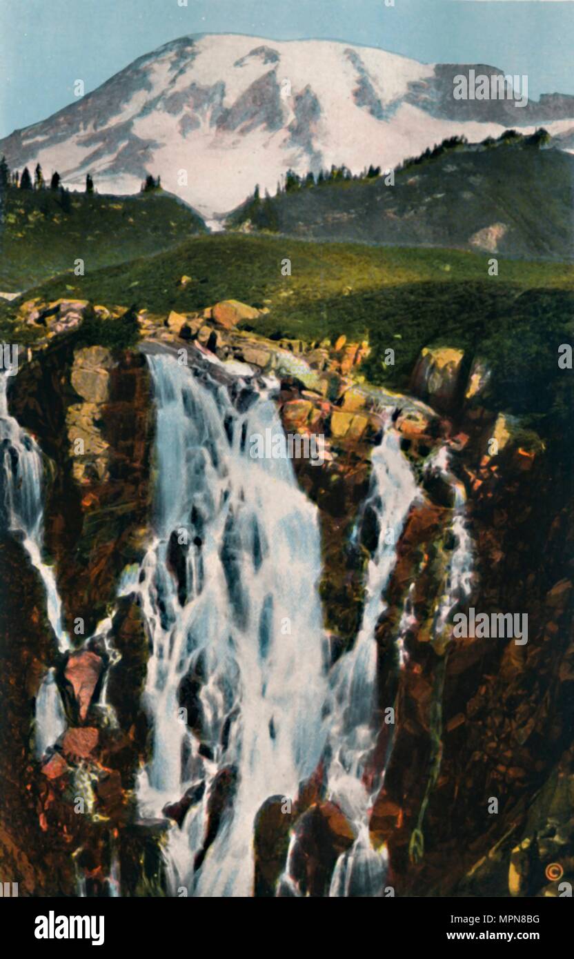 'Myrtle Falls and Mount Rainier', c1916. Artist Asahel Curtis Stock