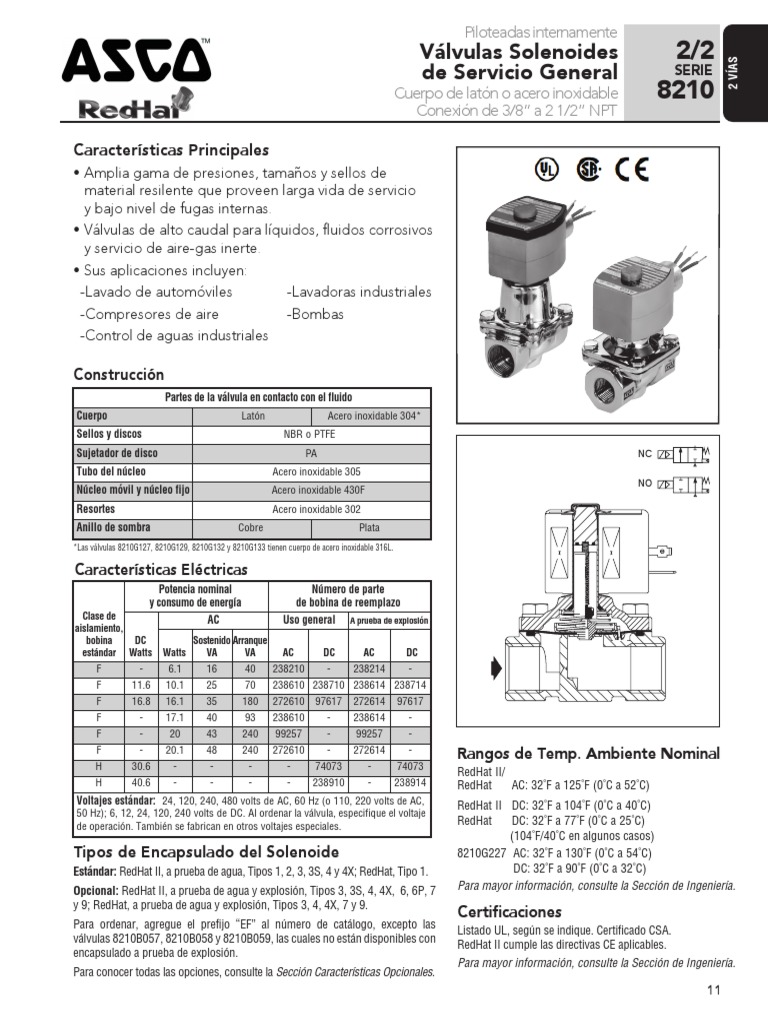 Asco Solenoid Valve Series 8210 Catalogesp Plomería Tecnologías de gas