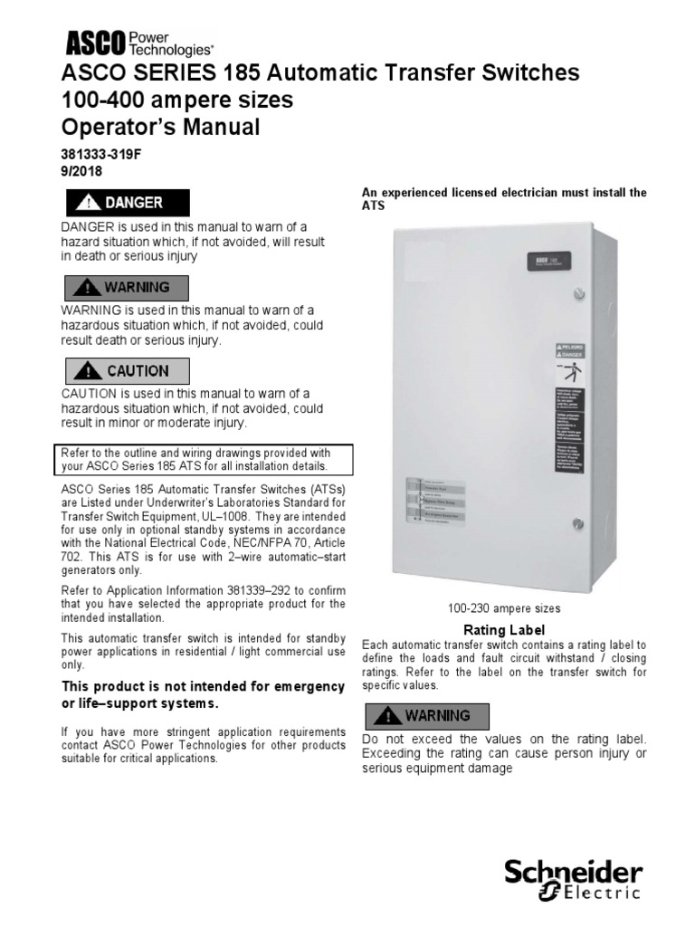 ASCO Power Technologies ASCO Series185 Automatic Transfer Switches User