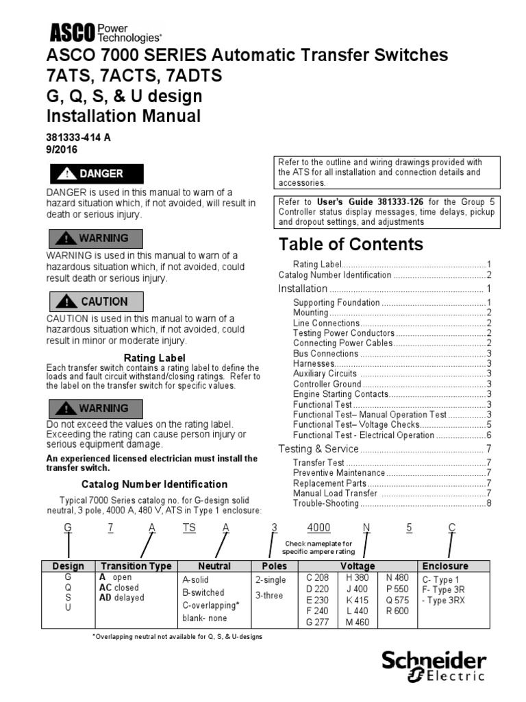 Asco 7000 Series Automatic Transfer Switches Installation Manual