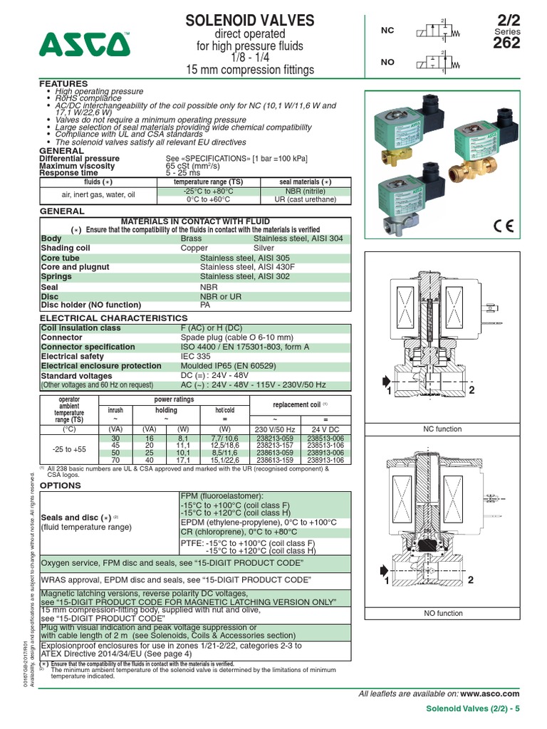 Catalog Europe Solenoid Valves General Service 262 Stainless Steel Asco