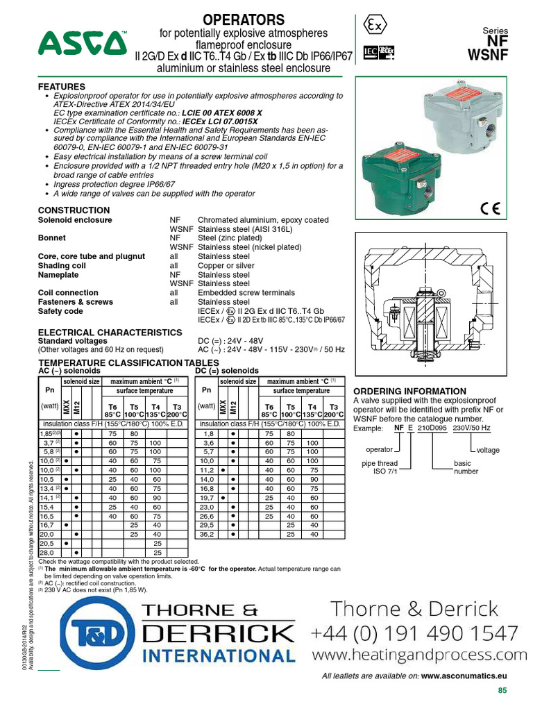 ASCO NF WSNF 8327 Ex Proof ATEX Solenoid Valve Product Data Sheet PDF
