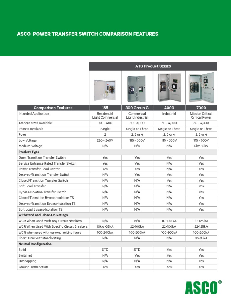 Asco Power Transfer Switch Comparison Features3149 134689 0 PDF