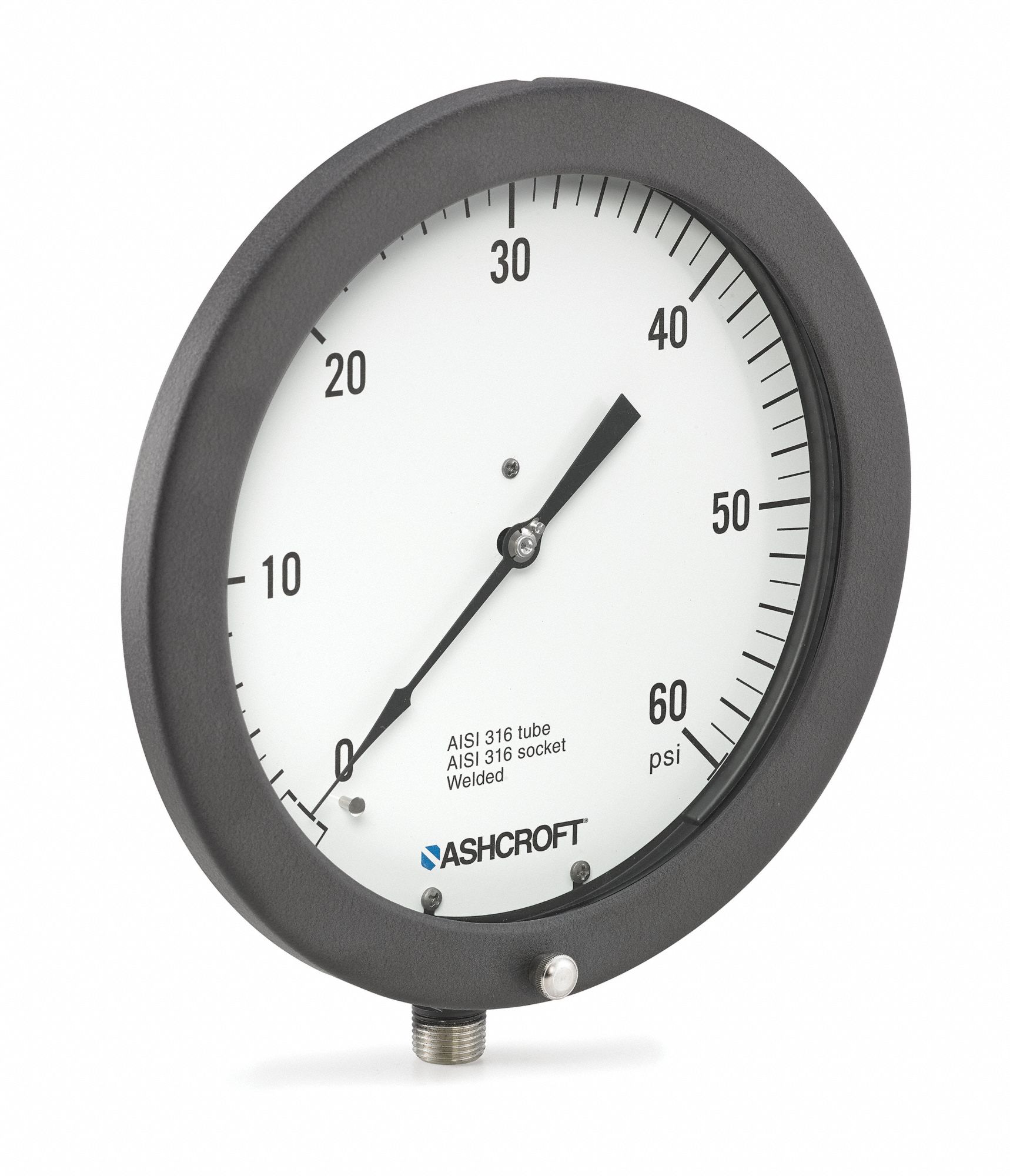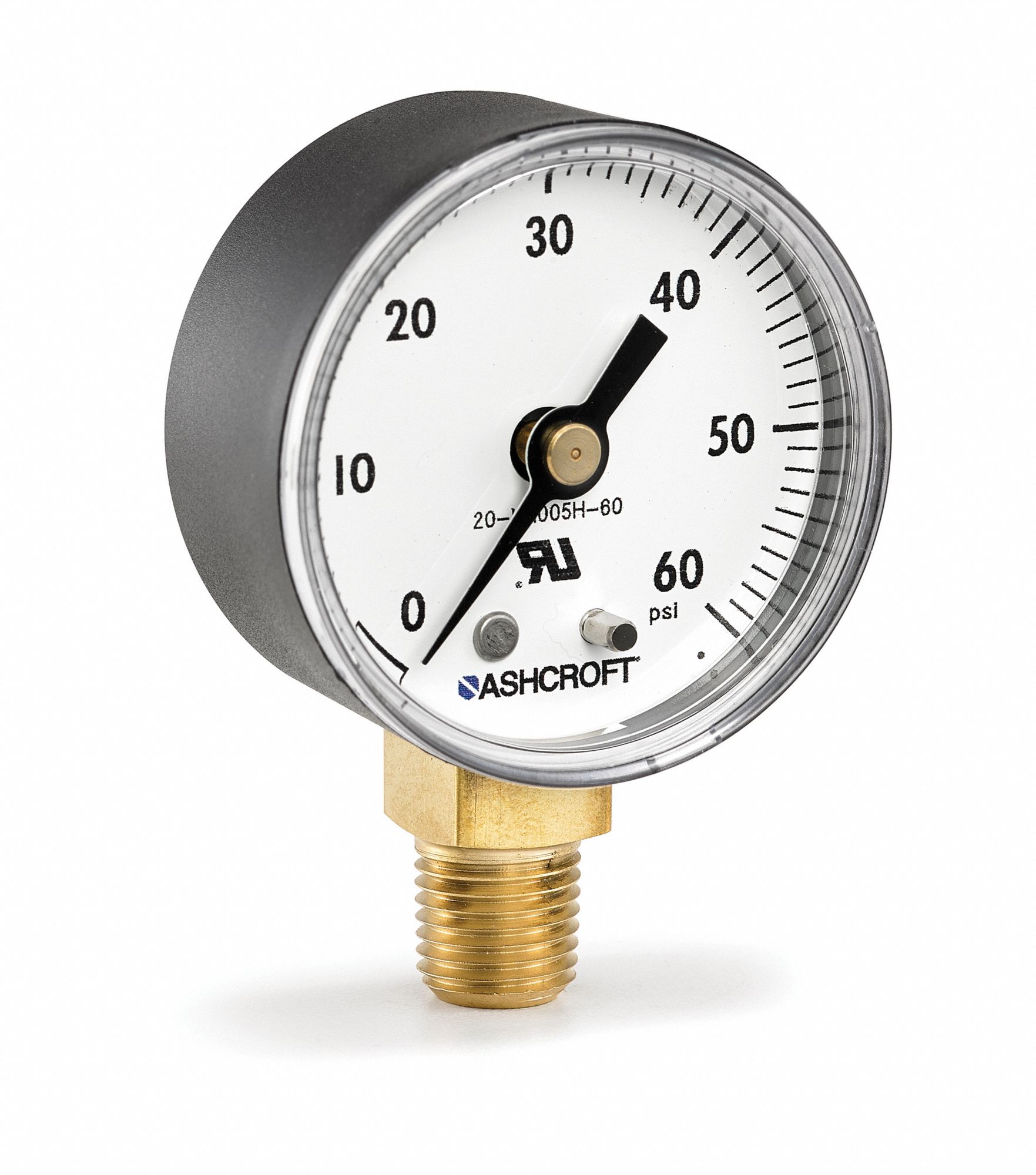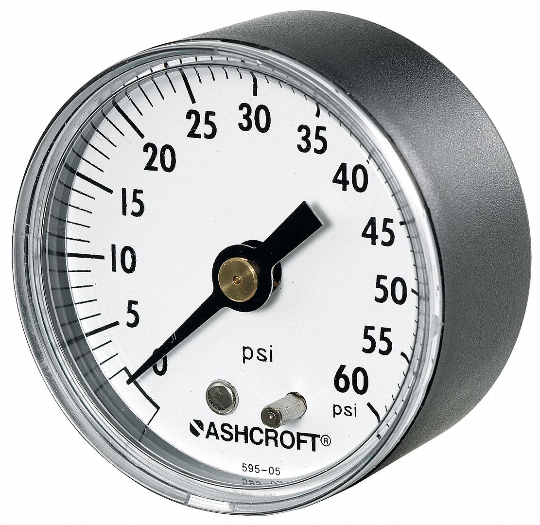 ASHCROFT Industrial Pressure Gauge 0 to 60 psi, 2 1/2 in Dial, 1/4 in