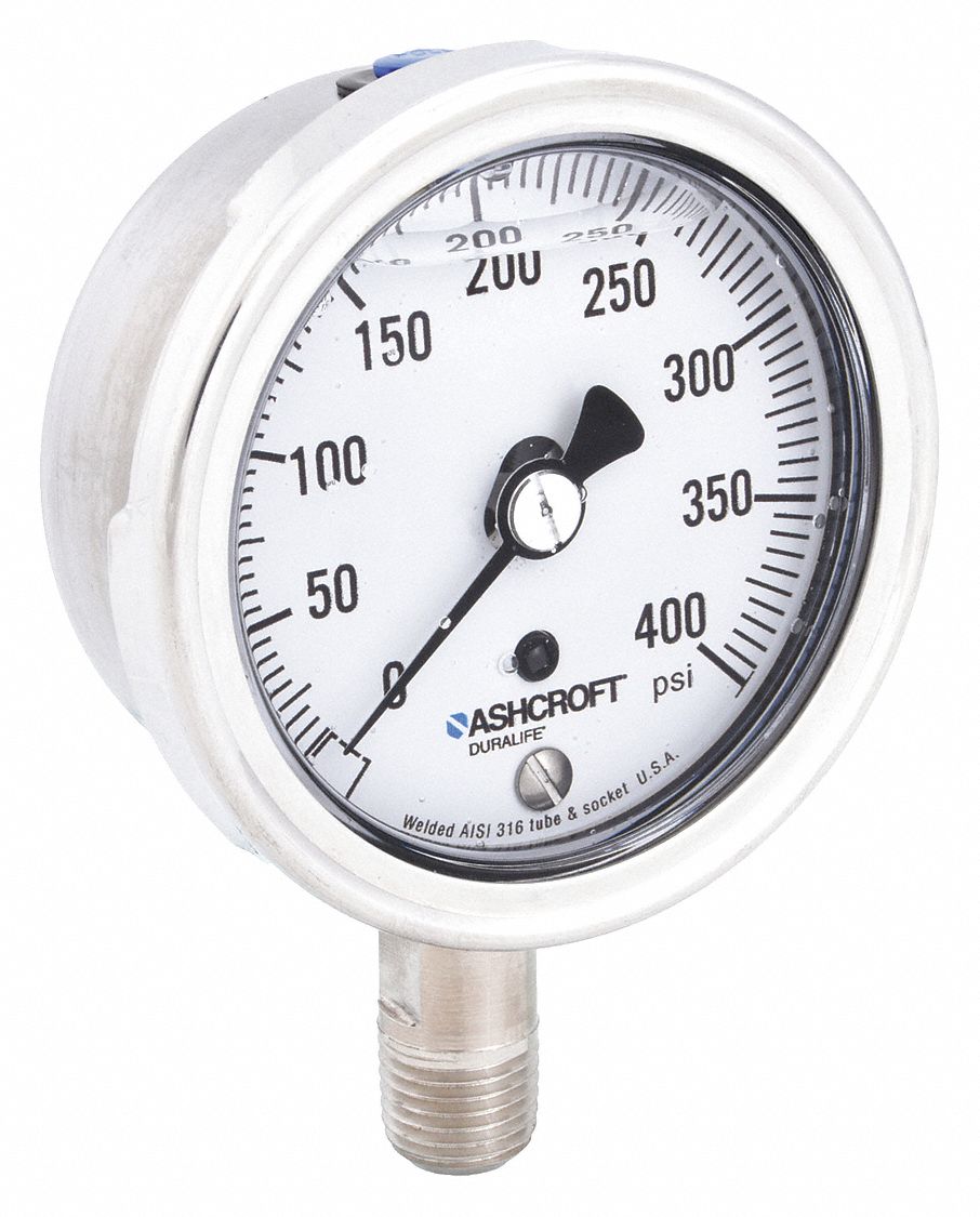 ASHCROFT, 0 psi / Hg to 400 psi, 2 1/2 in Dial, Industrial Pressure
