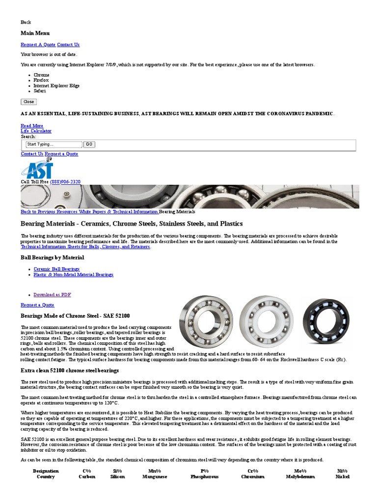 Bearing Materials AST Bearings PDF Stainless Steel Heat Treating
