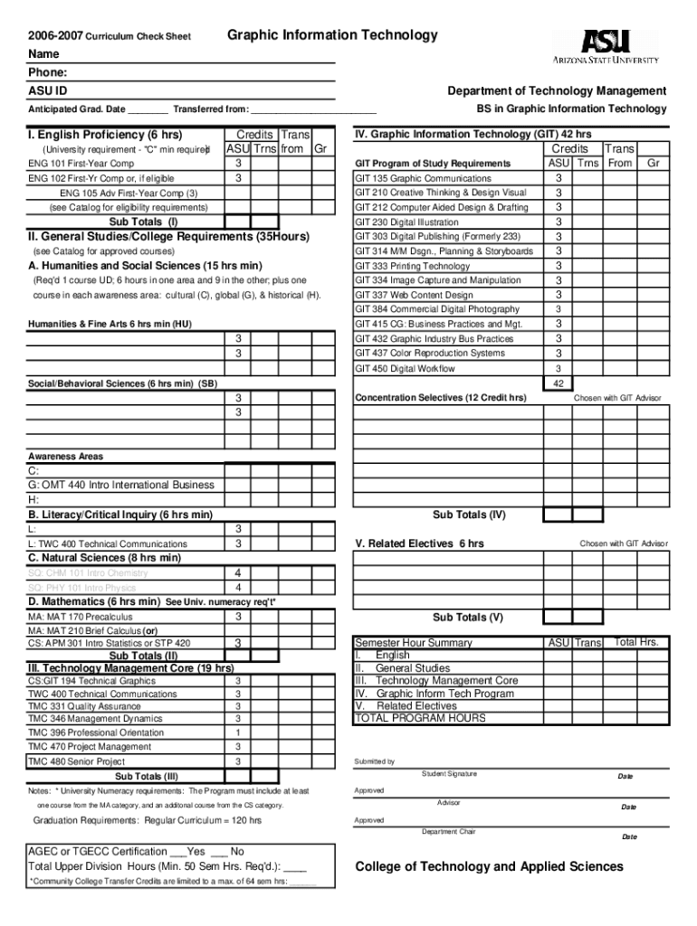Fillable Online catalog asu B.S. Graphic Information Technology The