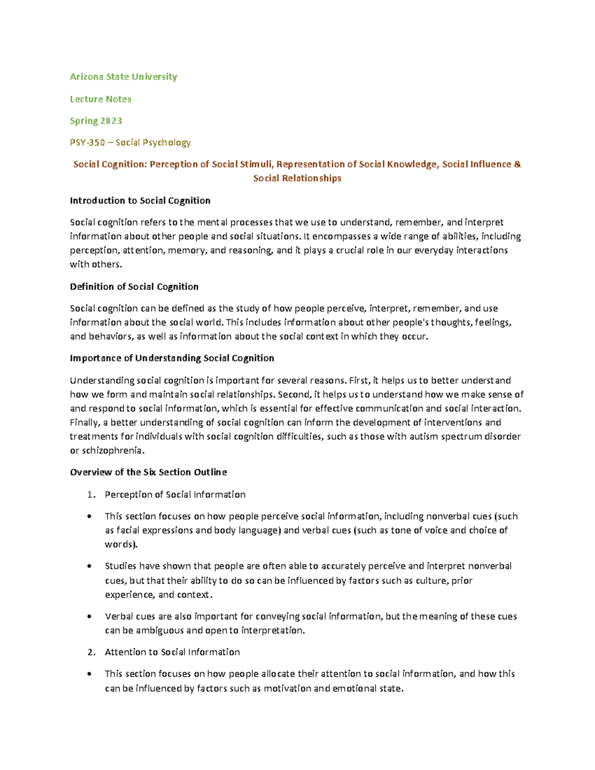 ASU PSY 350 Social Psychology Week 6 Lecture Notes Arizona State