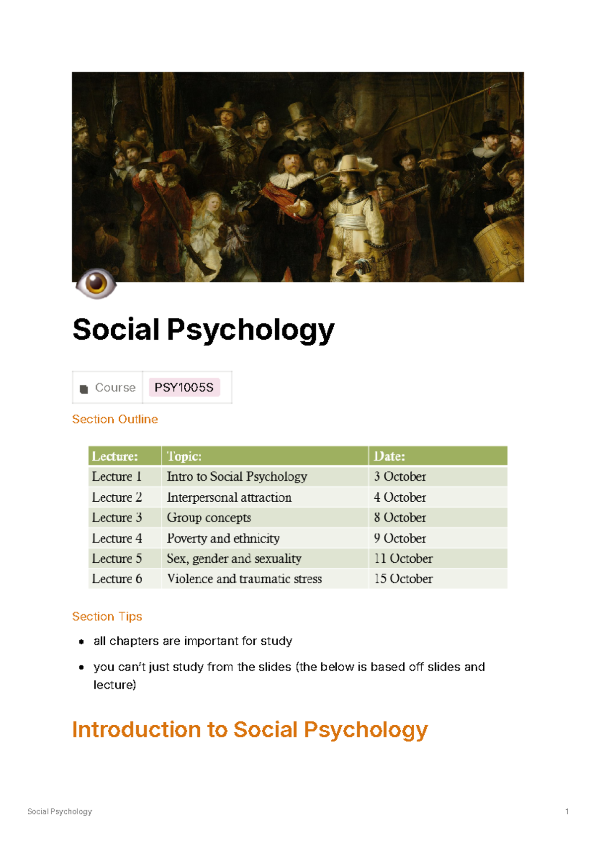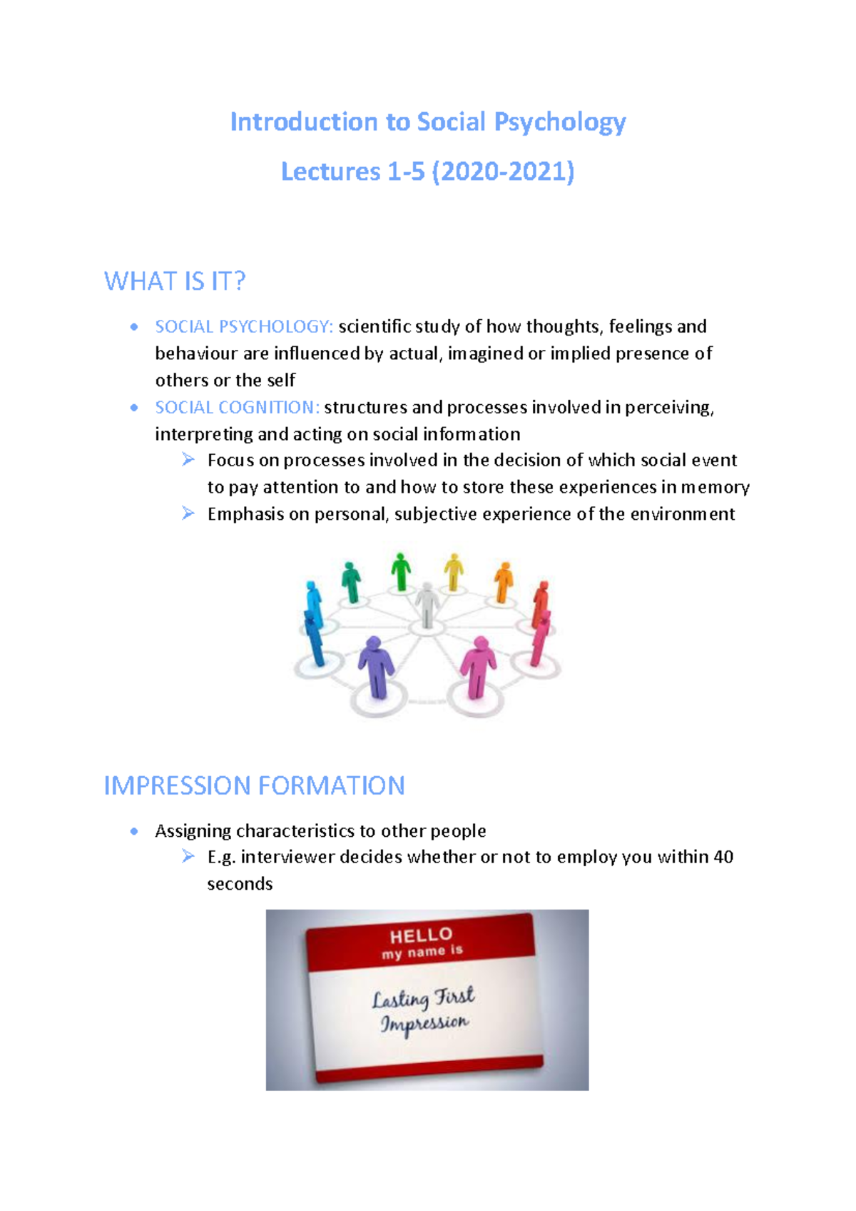 Introduction to Social Psychology lecturenotes 1to5 20202021