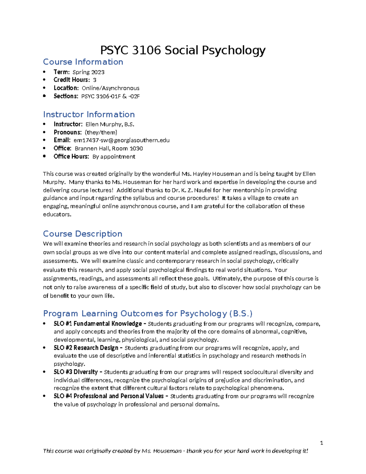 Spring 23 PSYC 3106 Syllabus Social Psychology F01&F02 PSYC 3106