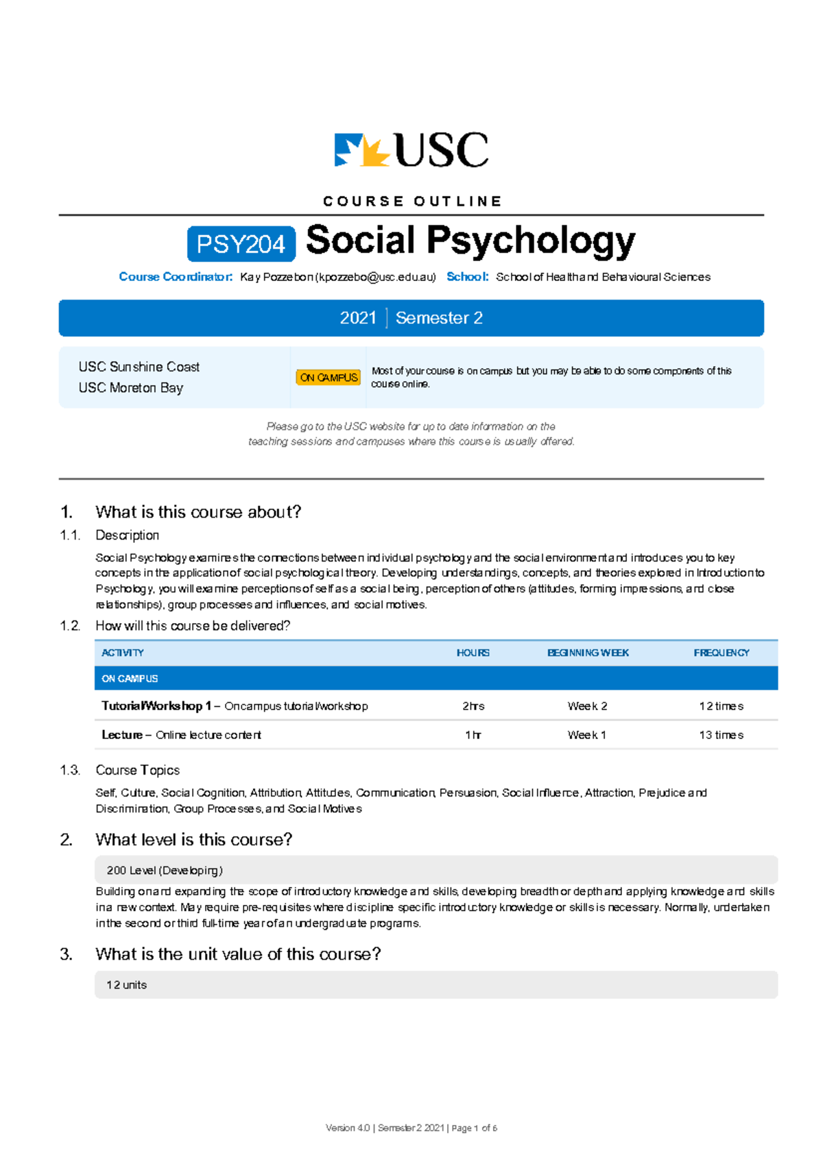 Course outline PSYC2001 2024 PSYC2001 (Social Psychology) Course