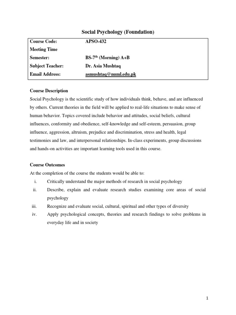 Social Psychology Course Overview PDF Social Psychology Psychology