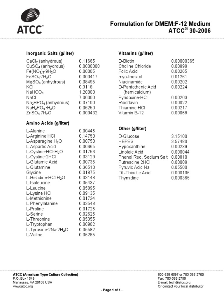 ATCC DMEM F12 Culture Media at ₹ 2100/bottle Culture medium in
