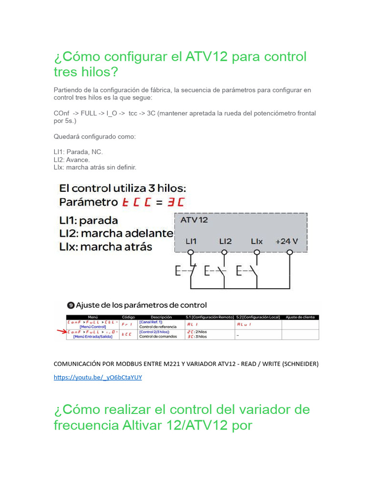 Cómo Configurar El ATV12 para Control Tres Hilos PDF