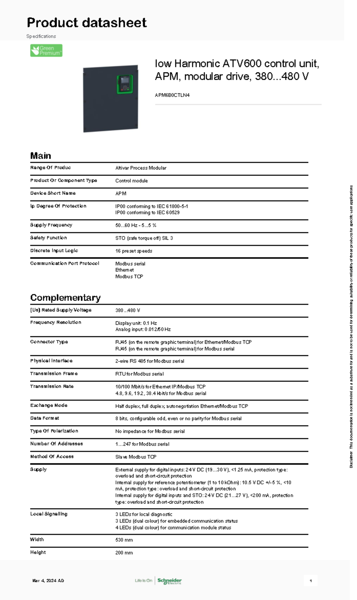Schneider Electric_AltivarProcessATV600_ATV6A0M10Q4 PDF Electric